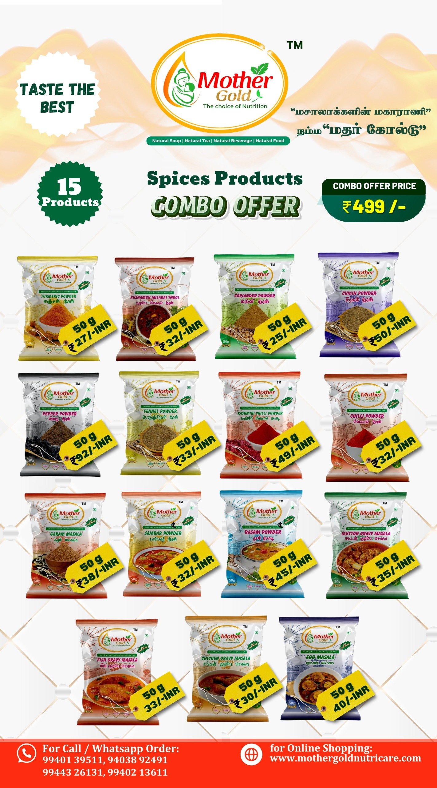 π° Combo Offer Price: Spices 15 Products Combo βΉ499 (Original Price: βΉ593) You Save: βΉ94!